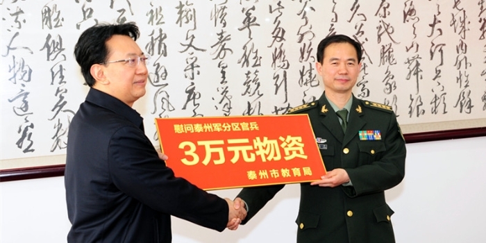奚爱国向军分区领导介绍了2017年泰州教育取得的成绩,并代表广大师生感谢军分区对泰州教育工作的关心和支持。奚爱国表示,市教育局将进一步加大军民共建力度,发挥教育部门职能,为驻泰官兵随军家属安置、子女上学提供最大的方便。奚爱国代表市教育局向军分区官兵赠送了慰问品,祝愿大家过个安乐祥和的新春佳节。
