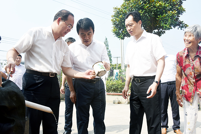 黄桥镇翁庄村地处334省道北侧,如泰运河南岸,现有20个村民小组。史立军深入翁庄村,查看村容村貌,了解村情民意。该村十至十四组村河由于205县道横穿,其下涵洞过小,导致两侧河道水流不畅,水质受到影响。史立军来到河边,查看水体,要求征求村民意见,落实方案设计,既要确保路通,出行方便,也要确保水畅,岸绿水美。翁庄村还建设了清风广场,广场边建有翁氏宗祠,已成为村民议事、休闲的重要场所。史立军指出,要不断深化农村精神文明建设,以乡风文明的有力提升,推动实现乡村振兴。