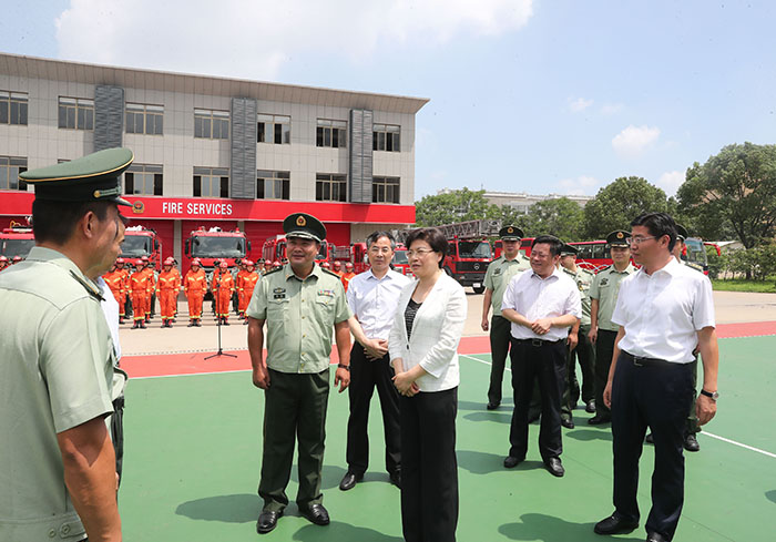 在武警泰州消防支队,韩立明说,广大消防官兵是人民生命财产安全的守护神,是一支“逆行”的队伍,是一支拉得出、打得响的队伍。当前泰州正处于推进高质量发展的关键时期,希望广大消防官兵利用信息化手段及时掌握和消除各种火情隐患,切实加强对化工园区、人员密集场所的隐患排查,确保人民生命财产安全。高温季节,要把消防安全放在更加重要的位置,确保安全度夏。