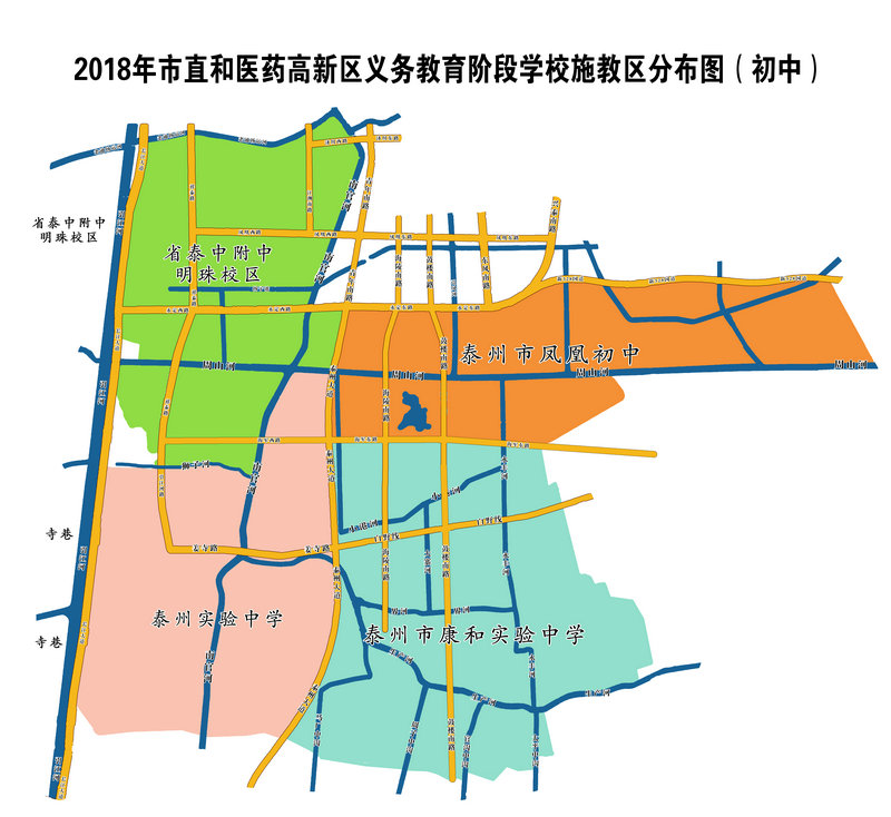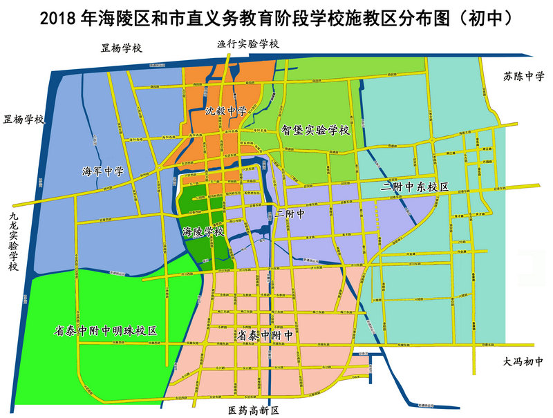 海陵区和市直初中学区分布图